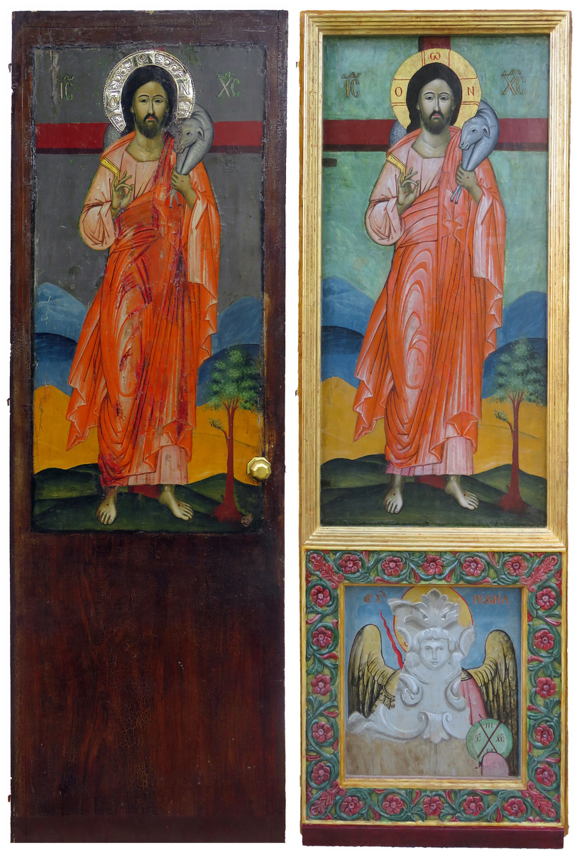 In their attempt to initially “cleanse” the works or the icons, as they commonly term their arbitrary intervention, these individuals, often amateurs, cause damage to the designs and colours of the icons or the paintings they undertake. To cover up these damages, they overlay whatever authentic elements remain of the icon or the artwork with a new layer of paint, imparting their arbitrary and counterfeit touch upon the works. This action distorts their authenticity and integrity first and foremost, including the composition, design, colours, etc., and sometimes, especially in earlier times, even involves re-painting the icons or artworks with new painting subjects. In better scenarios, either the damages are minor or they overpaint over the tarnishing and often “black” varnish of the work without delving into the arbitrary and destructive “cleansing.” Their “correction,” as they commonly refer to these arbitrary interventions, involves partially or completely covering the artwork. Less frequently, particularly in older times, we encounter the addition of a new “gesso” layer preparation on top of the old icon, followed by re-painting it from scratch. However, in most cases, the new “arbitrary retoucher” overlays the design of the original image to “correct” it. Thus, by arbitrarily overlaying and counterfeiting the authenticity and historicity of the icon or the artwork, they cover the painting surface with new designs and colours while attempting to mimic the existing ones, albeit without ever matching the originals, resulting in the violation and alteration of the authenticity and historicity of the icon or the respective painting.
